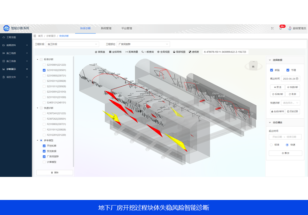 内置地质、设计、监测等多专业基础数据和相关规范,集成前期各专业模型,融合施工期动态数据,夯实智能预警的数据基础。