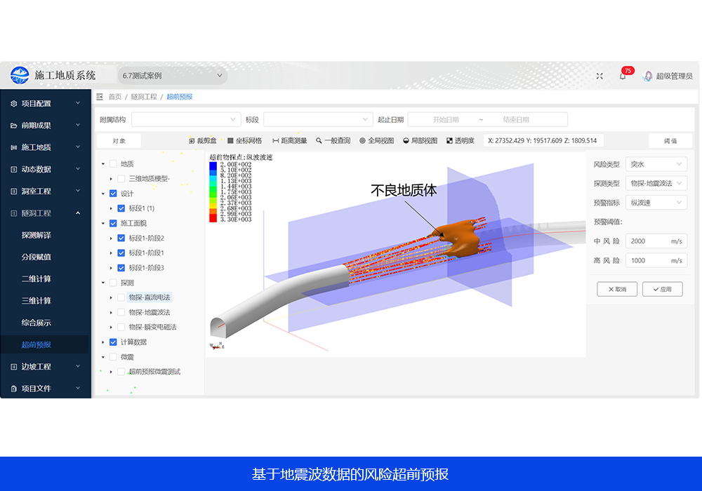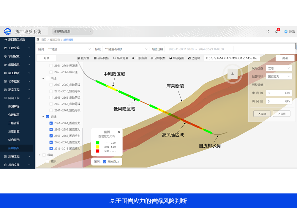 针对地质灾害和应力致灾两种情形,分别采用基于超前探测的自学习和仿真模拟的两种方法,实现地质风险智能预警。
